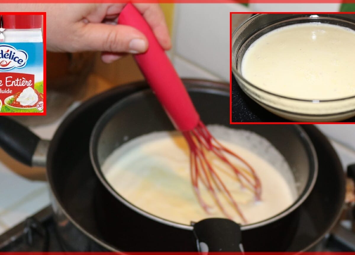Pour réaliser très facilement une crème anglaise onctueuse sans qu'elle n'attache au fond de ma casserole : je fais bouillir la même quantité de lait que de crème entière fluide Bridélice (20cl de lait + 20cl de crème) + de la vanille en poudre, que je verse dans mon mélange battu (3 jaunes d'oeufs + 60g de sucre). Je réchauffe cette préparation tout en remuant dans une casserole au bain-marie (ce qui évite qu'elle attache au fond) jusqu'à ce que ma crème commence à épaissir. Petit plus gourmand : mettre la crème anglaise refroidie dans un siphon, versée sur des fraises, les enfants comme les adultes adorent !