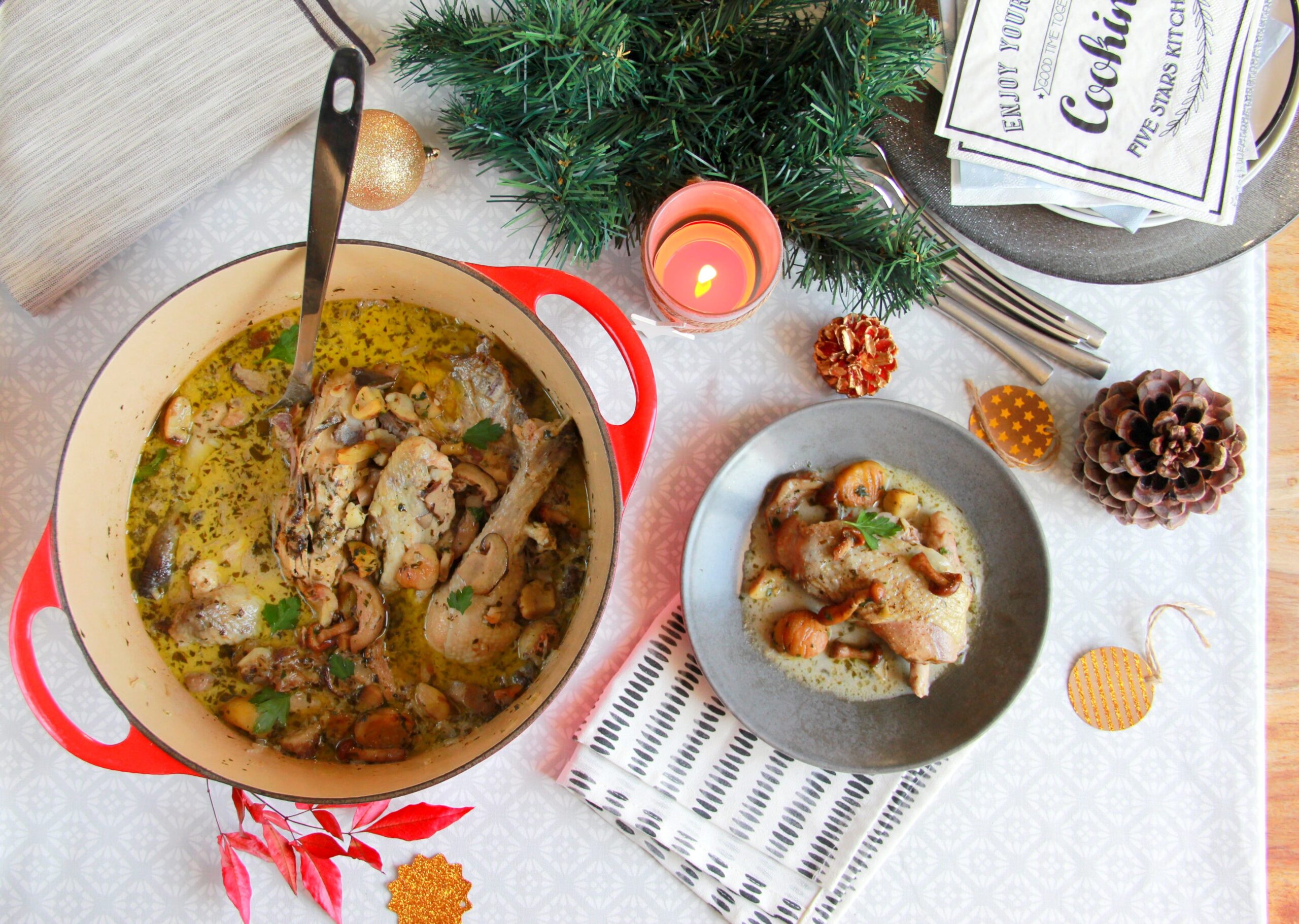 - Après cela, j’ajoute le fond de volaille, je sale, je poivre et je laisse cuire 40 minutes à feu doux en couvrant la cocotte.