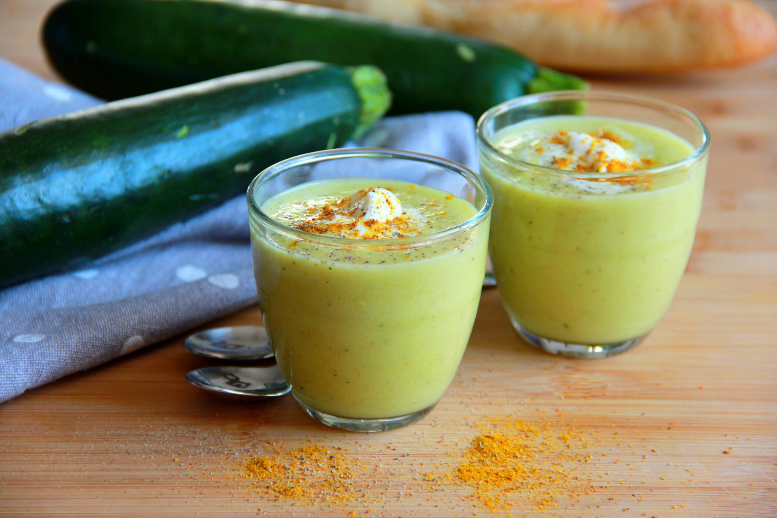 1. Je commence par cuire les courgettes dans de l’eau avec un cube de bouillon de volaille et du curry, selon mon goût.