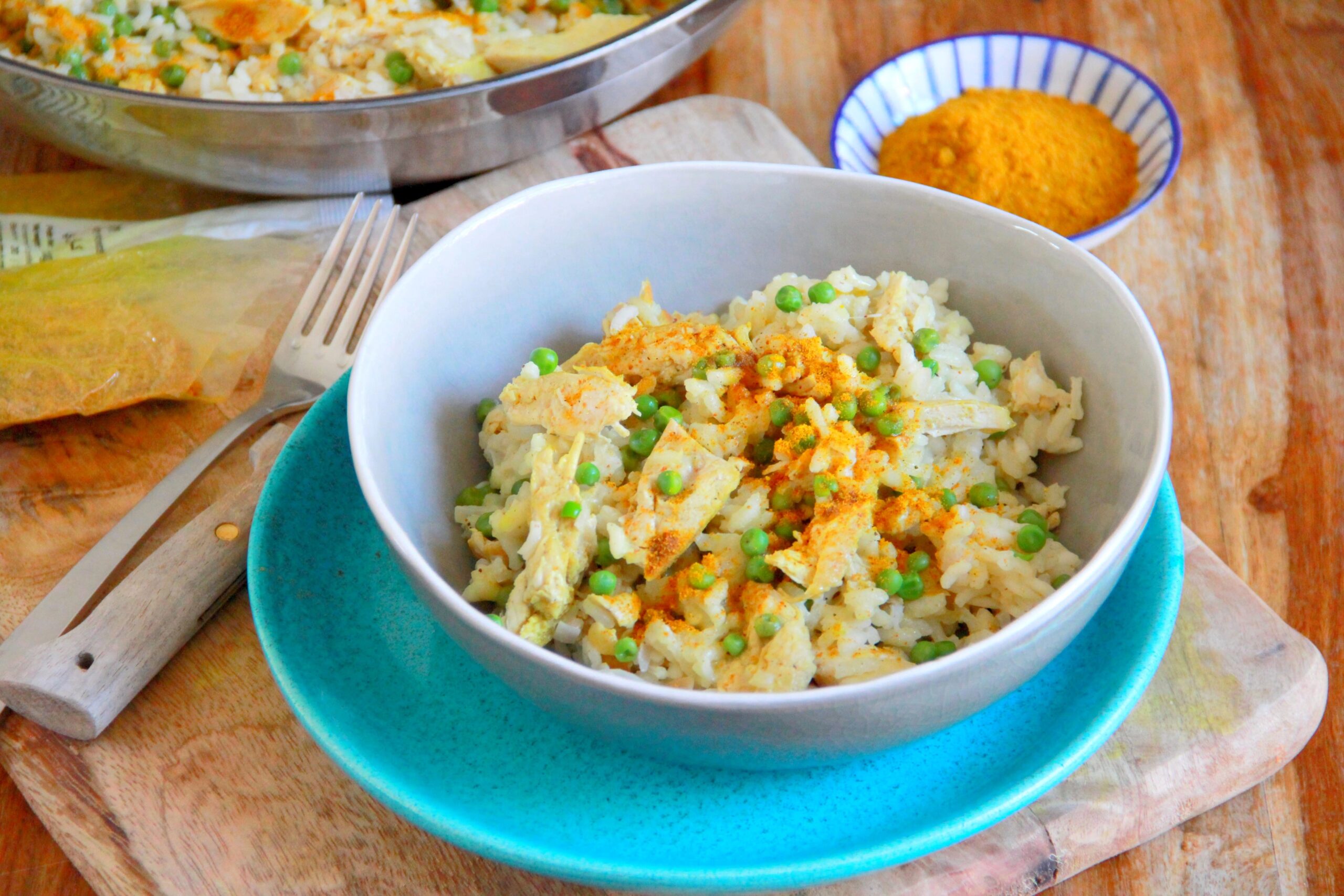 - J’incorpore alors les petits pois, ainsi que le poulet.