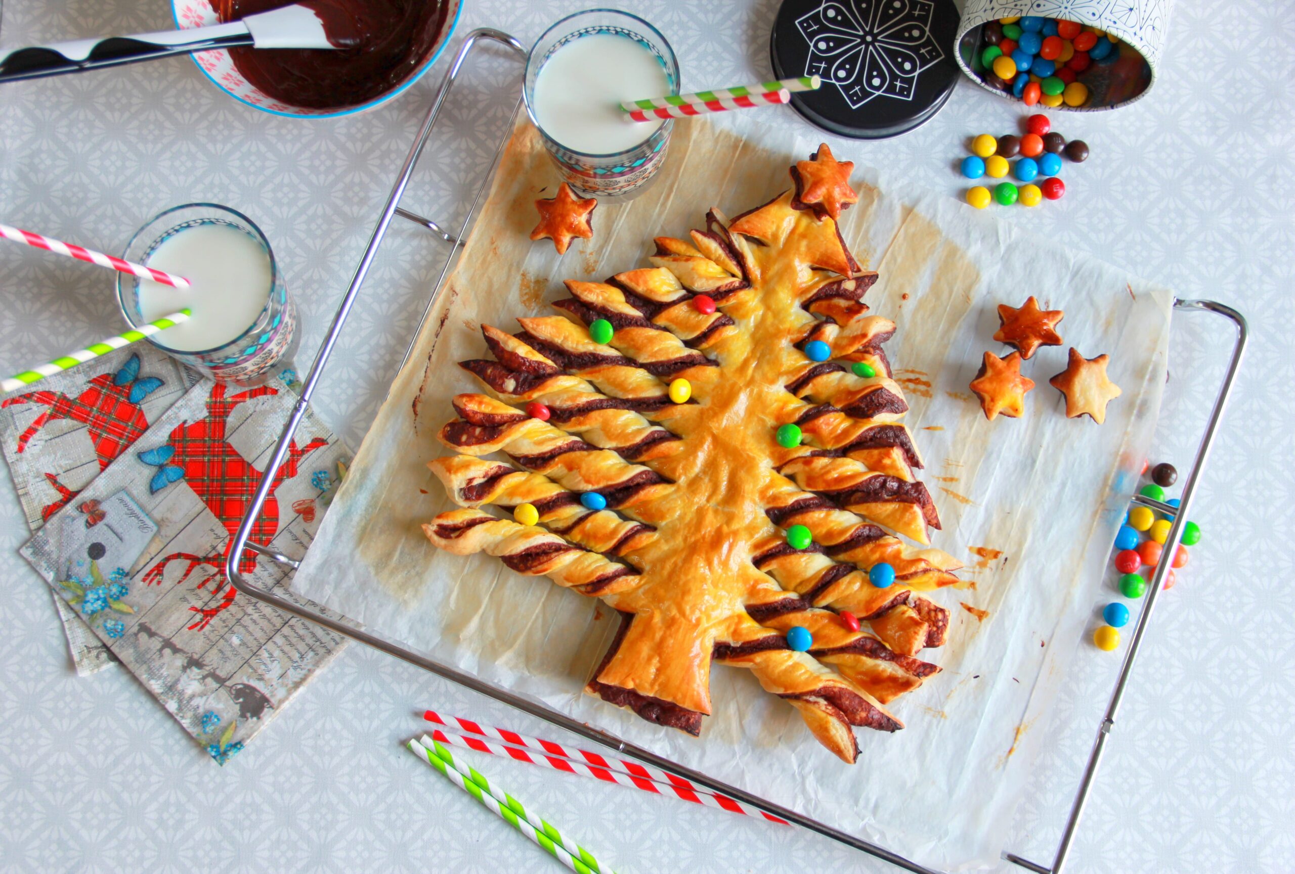 - Puis, je découpe la pâte en forme de sapin avec un couteau fin en gardant un tronc d’environ 5 cm de large. Je coupe des bandes horizontales, puis je les torsade.