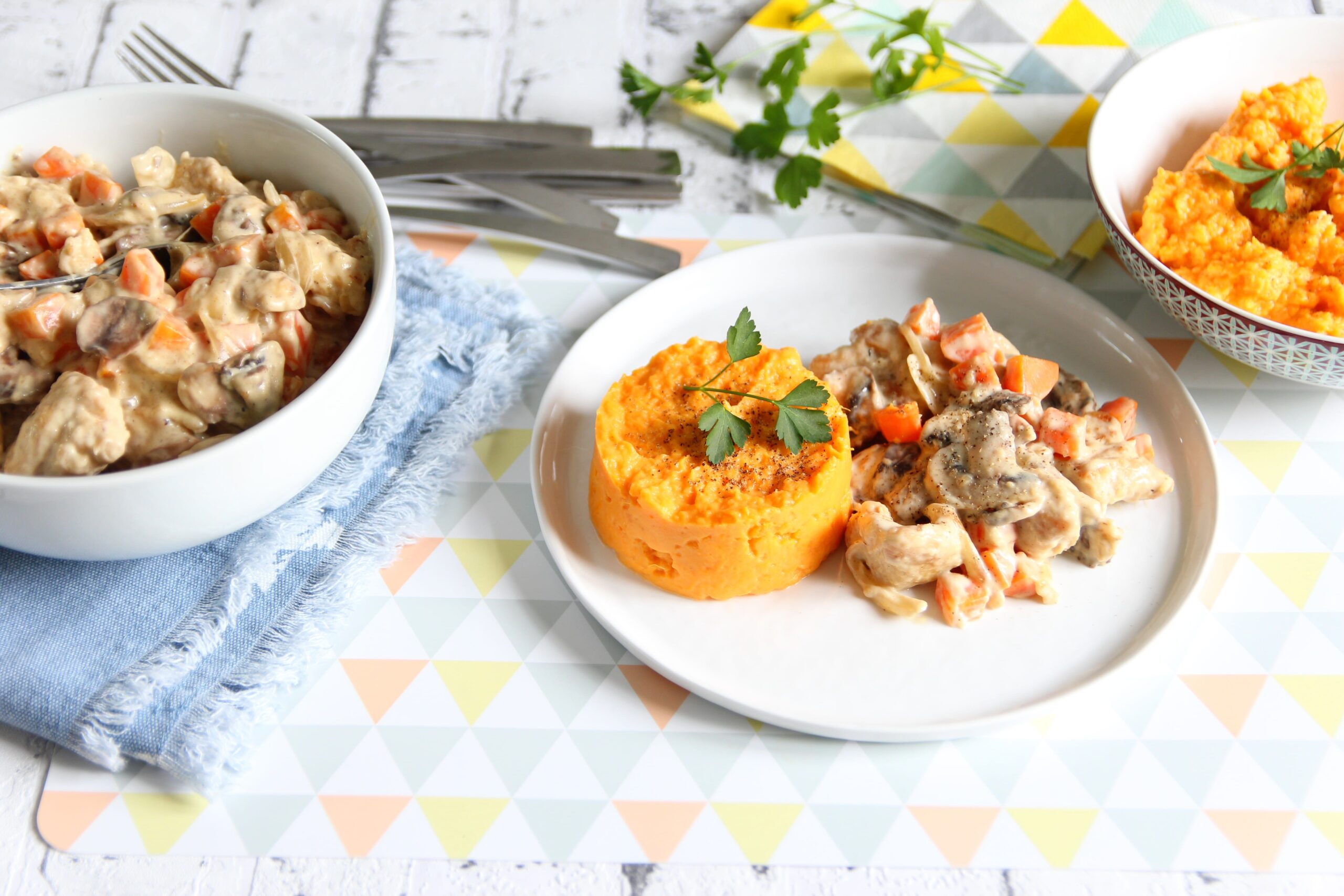 - Enfin, je sers le tout avec la purée de patate douce et de topinambours.