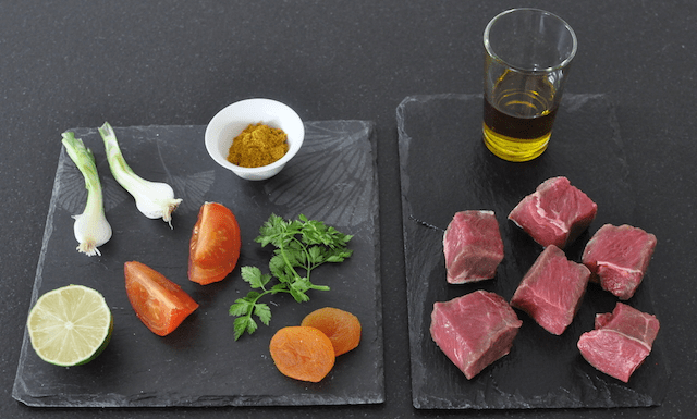 – crème ou yaourt, curry, raisins secs, oignons rouges, ail <br/>
