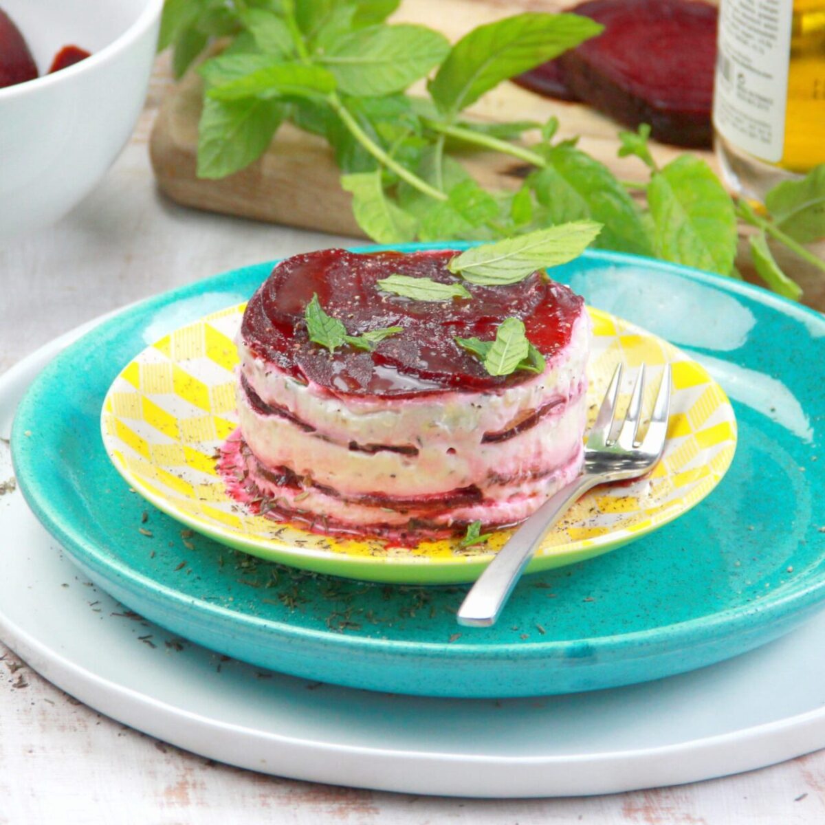 Mille-feuilles de betterave et fromage frais au noix