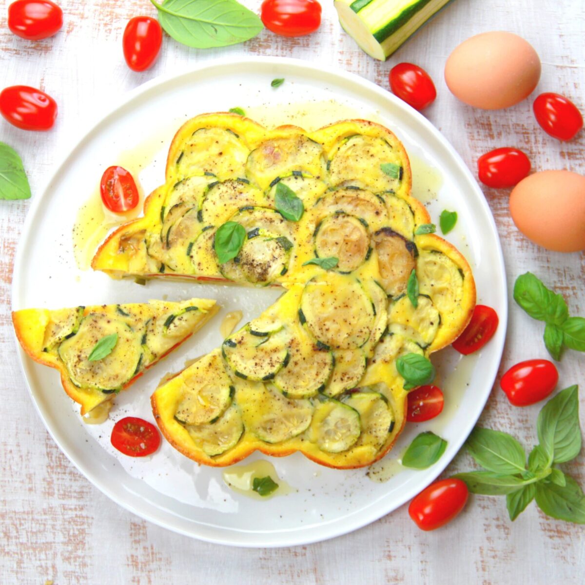 Clafoutis de courgettes, Parmesan, tomates cerises et basilic