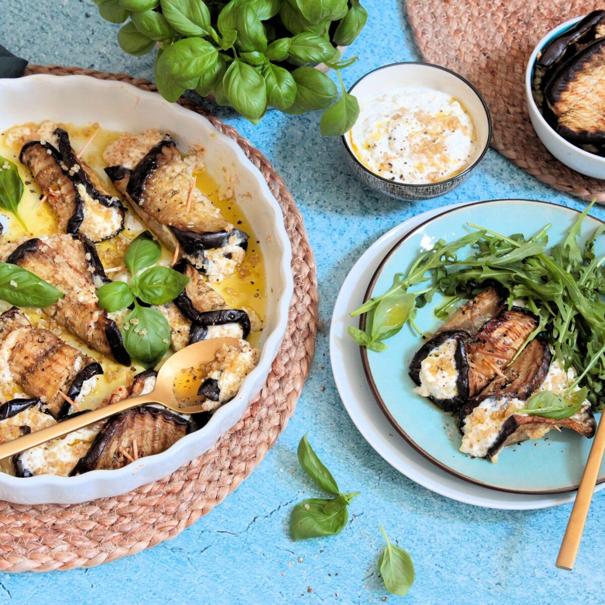 Roulés d’aubergines farcis au quinoa, ricotta, crème