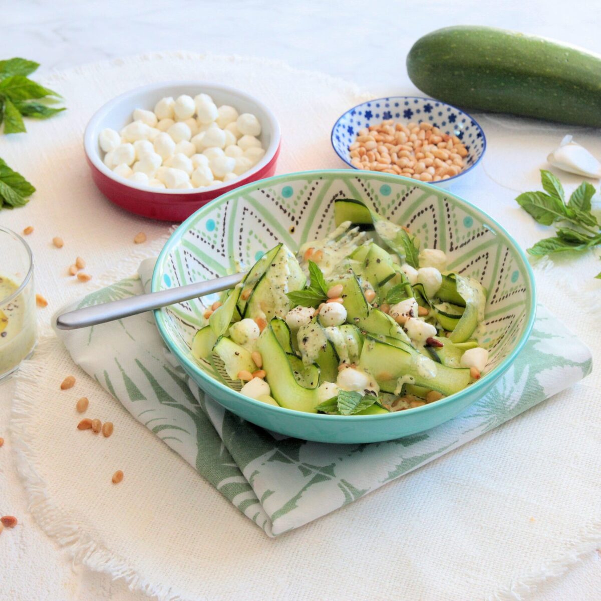 Tagliatelles de courgettes, billes de mozzarella & sauce crémeuse à la menthe