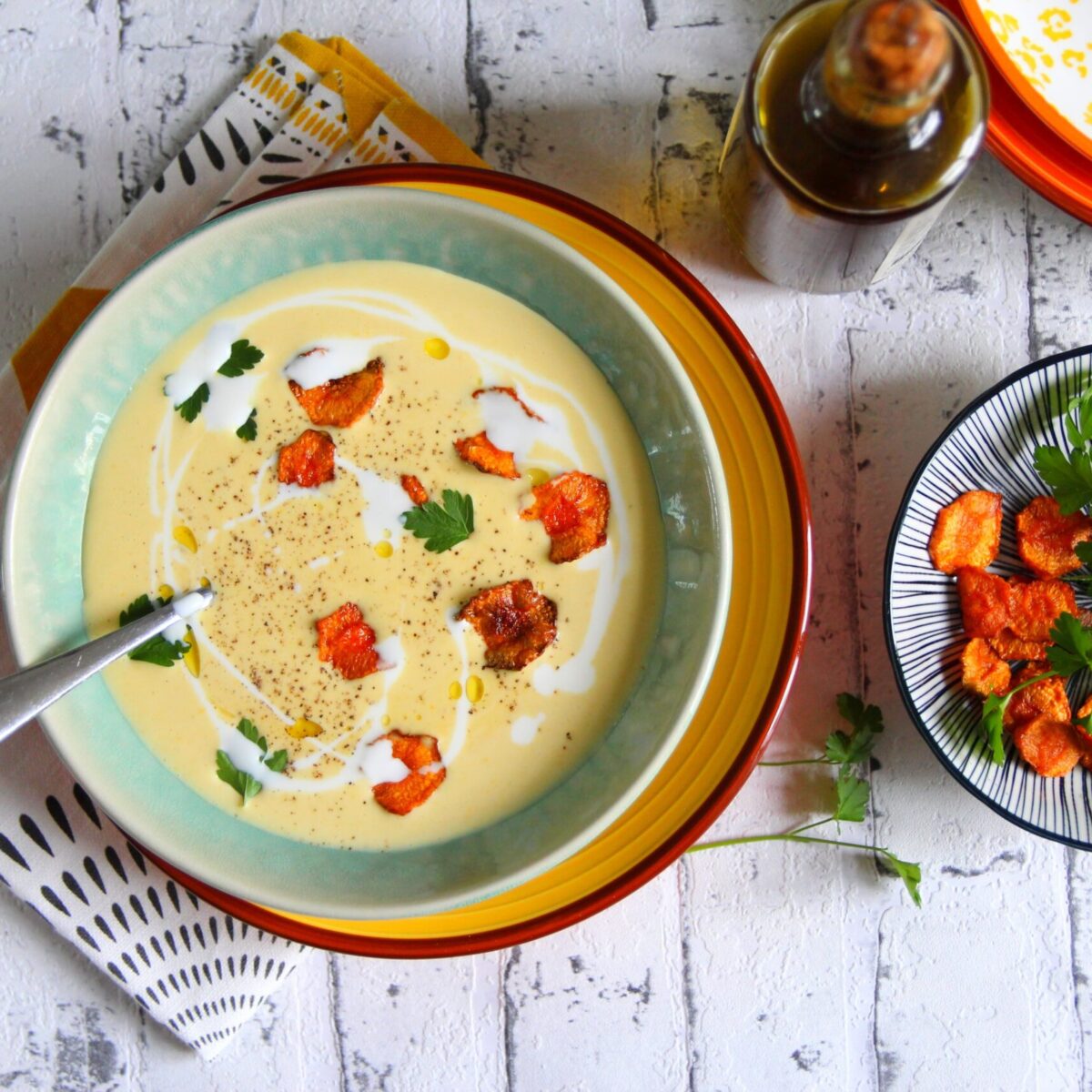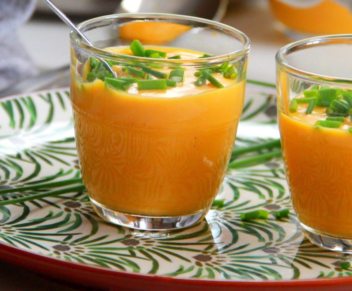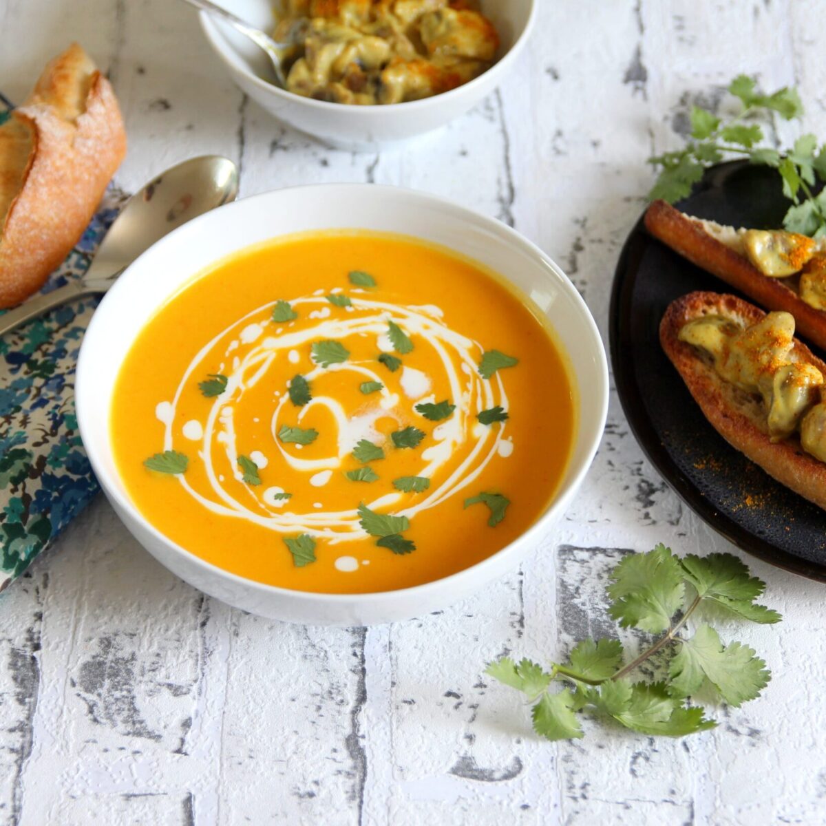 Soupe de courge butternut aux oignons rouges et graines de courge