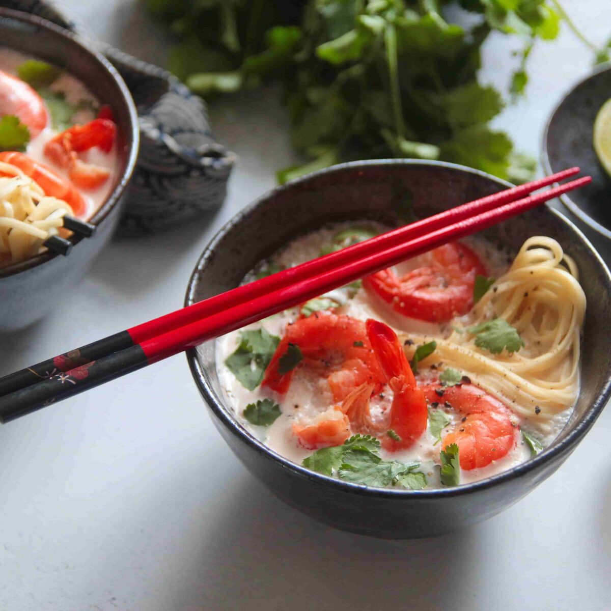 Soupe Thaï aux nouilles et crevettes
