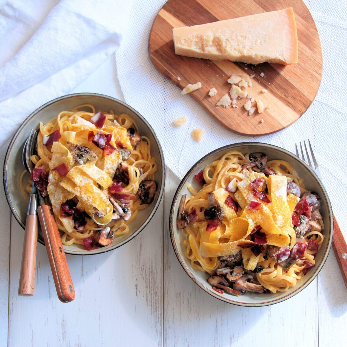 Carbonara aux champignons et tagliatelles de carottes