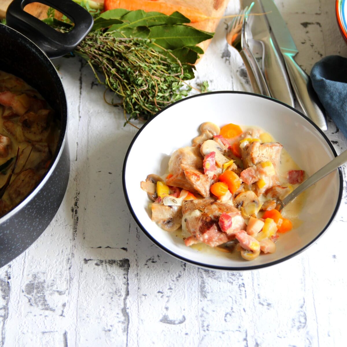 Rôti de porc aux panais et sauce crémeuse au thym et origan