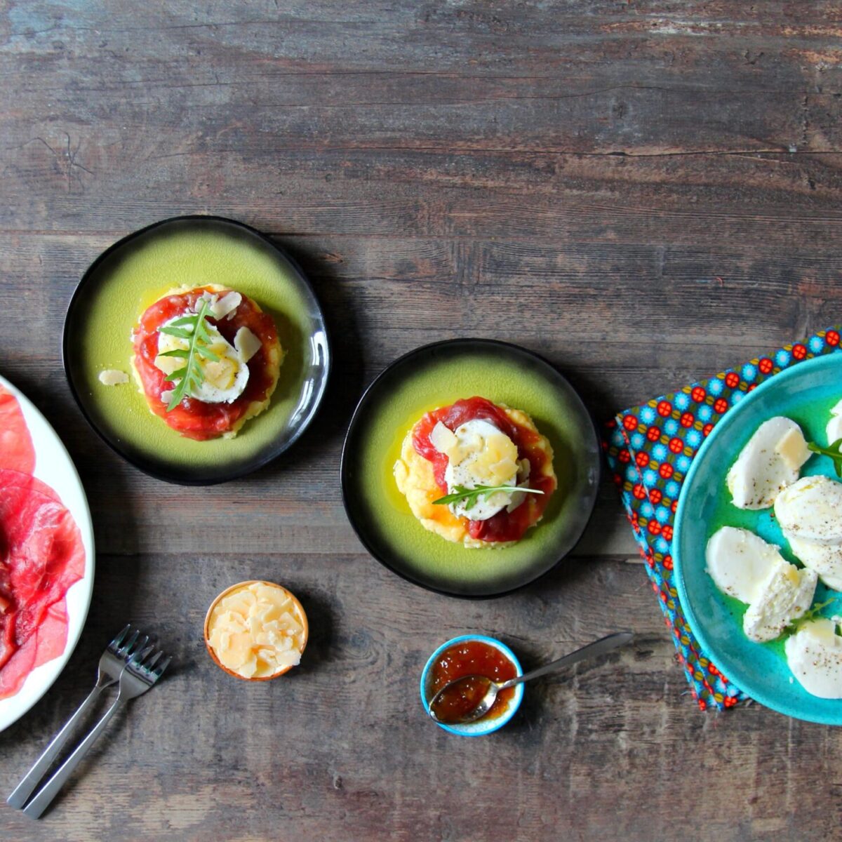 Carpaccio de bœuf et Mozzarella sur polenta