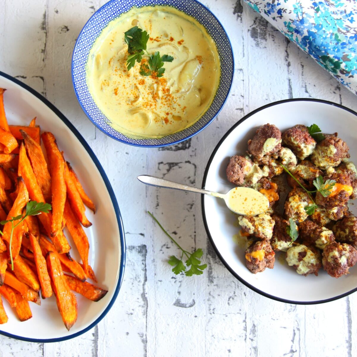 Boulettes de bœuf au fromage et frites de patate douce