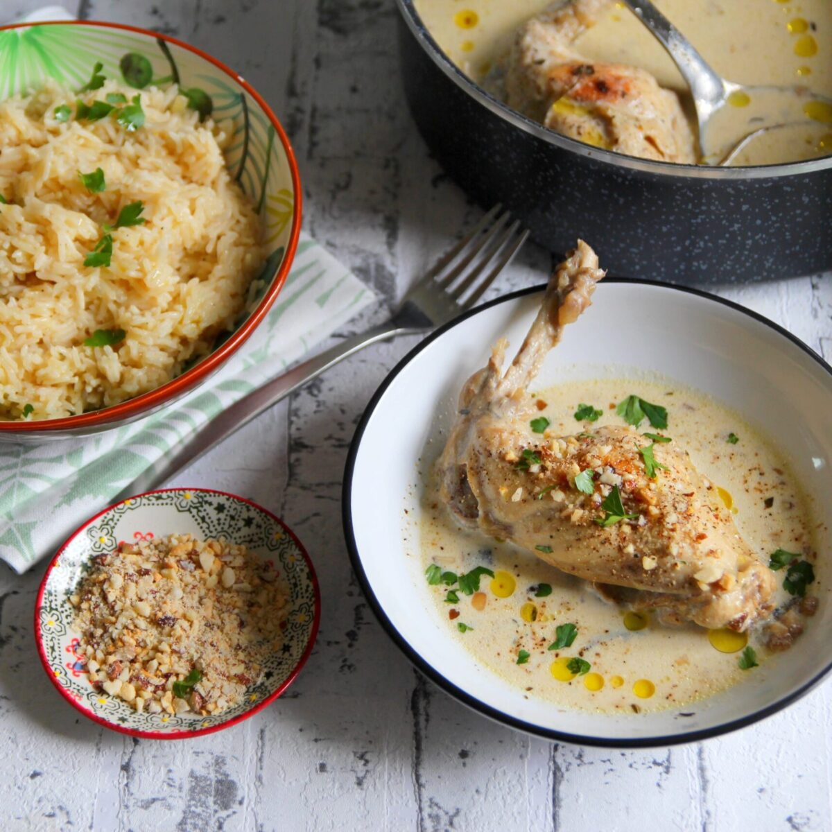 Lapin au vin blanc, riz pilaf