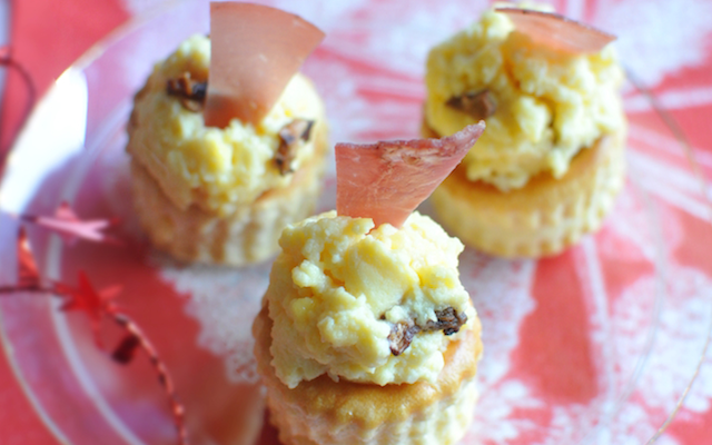 Bouchées aux œufs brouillés aux cèpes et coppa