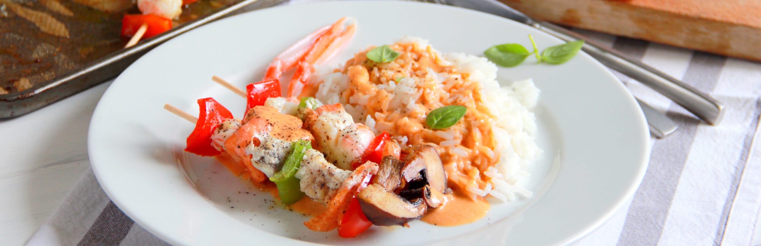 Brochettes de langoustines, lotte et saumon fumées au whisky