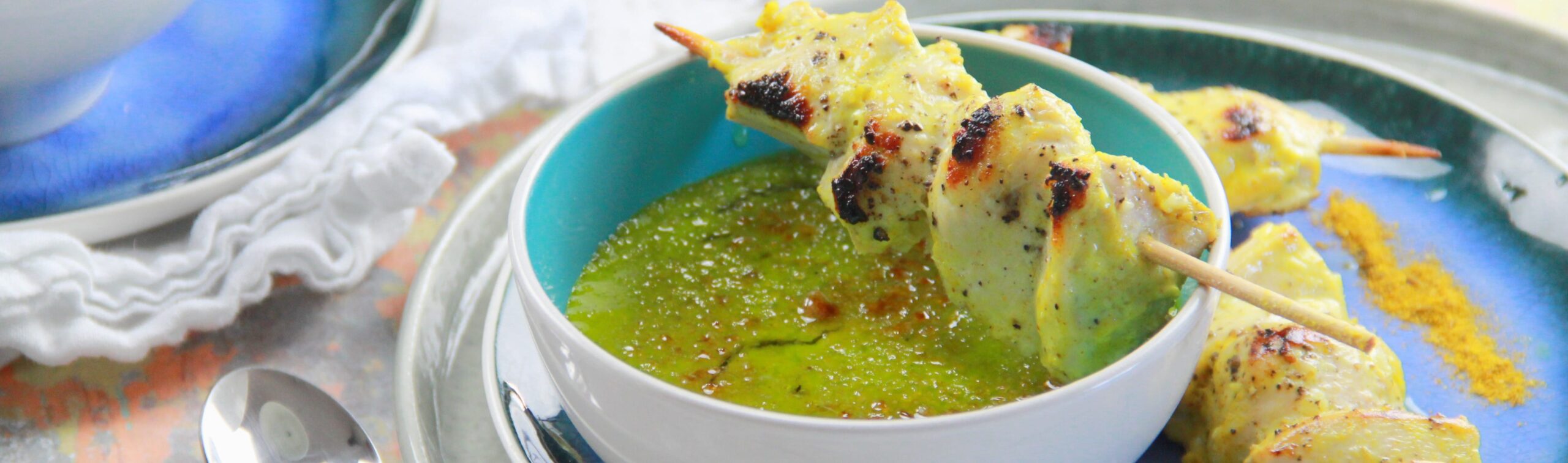 - Ensuite, je dispose la volaille marinée sur des pics à brochettes.