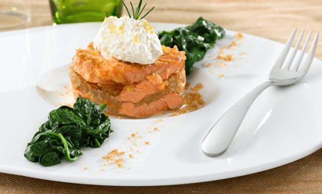 Croustillant de saumon au pain d’épices et fondant d’épinards