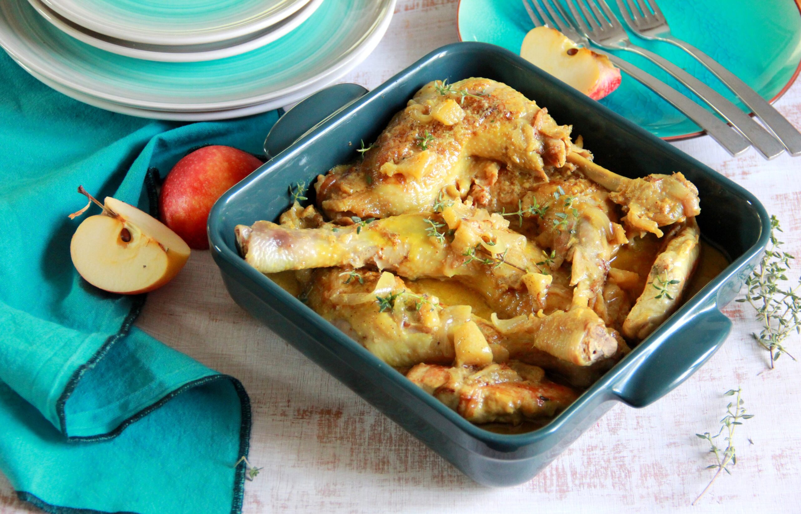 - Dans ma cocotte, je fais chauffer de l’huile et je fais revenir les morceaux de poulet avec l’oignon épluché et émincé.