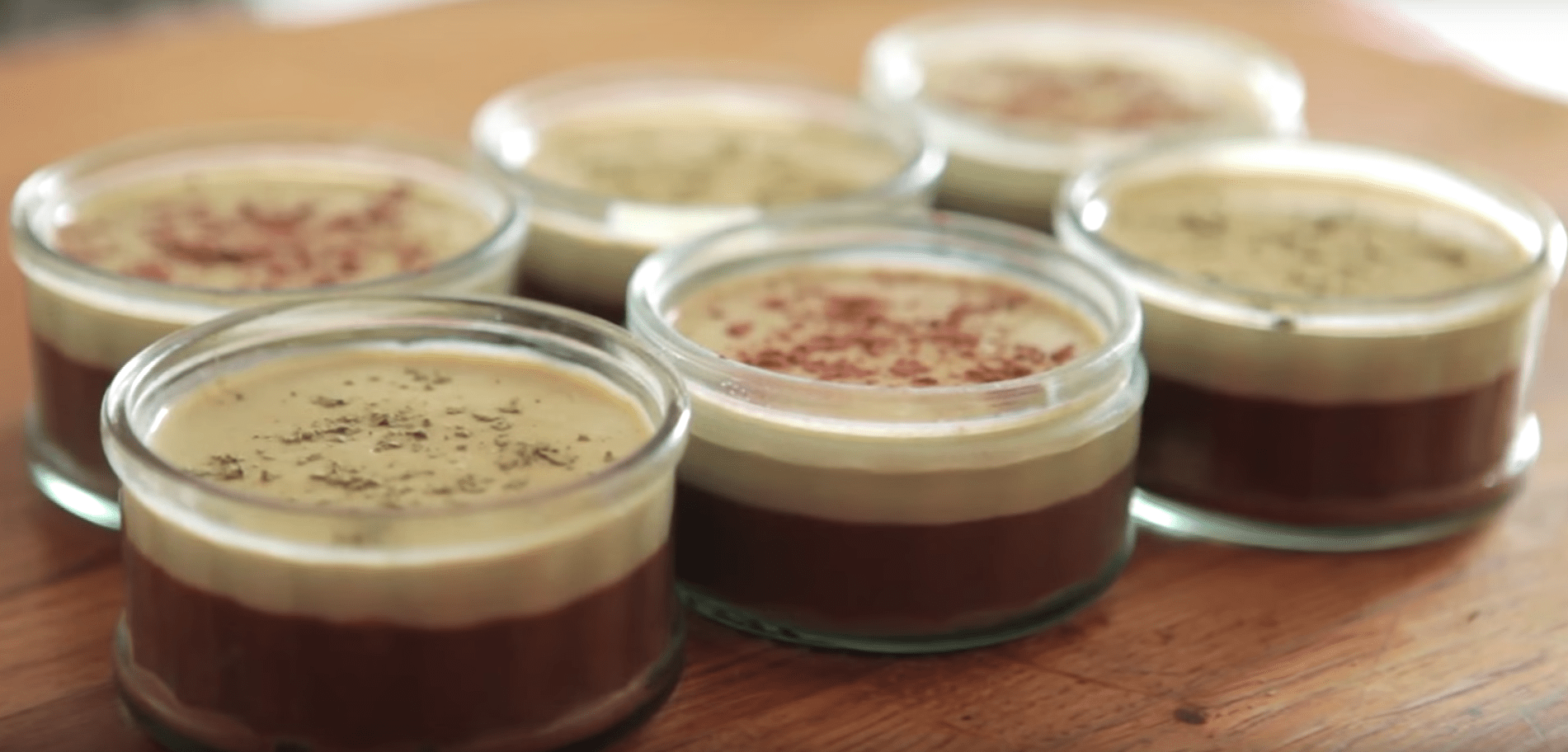 13. Avant de servir, je saupoudre le dessus des crèmes d’une pincée de thé vert en poudre ou de cacao amer.