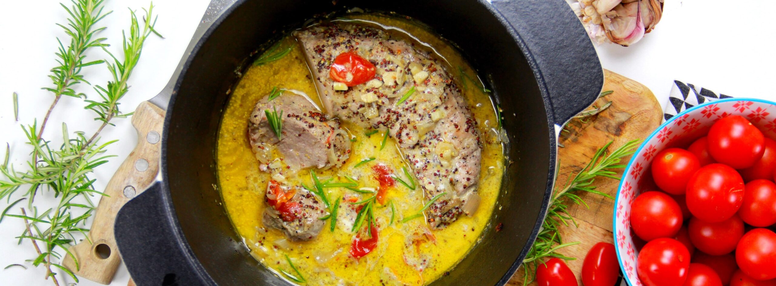 - Dans une cocotte allant au four, je dépose le filet mignon et je l’arrose d’huile d’olive.