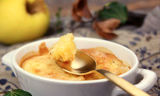 - Je répartis ensuite cette pâte sur les pommes dans le plat, puis j’enfourne le tout pendant 20 minutes.