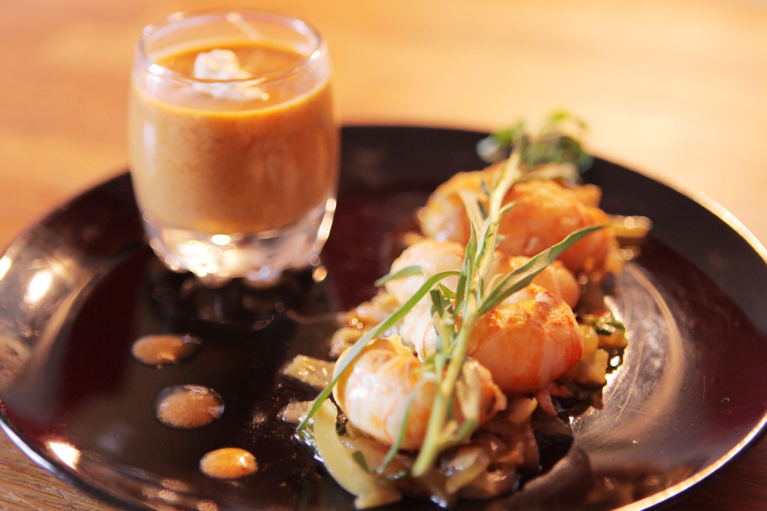 Langoustines à l’estragon flambées à la vodka et bisque crémeuse