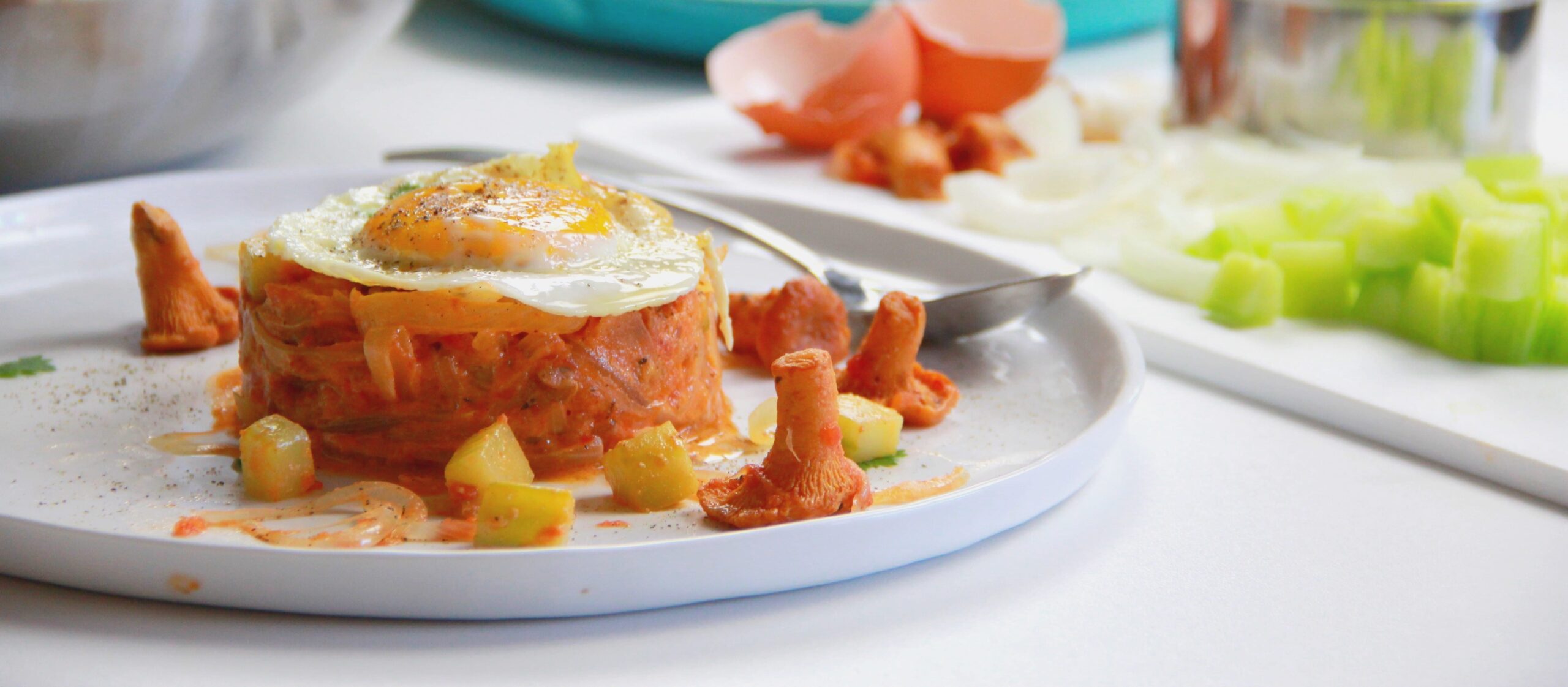- Dans une autre poêle, je fais cuire les œufs sur le plat.
