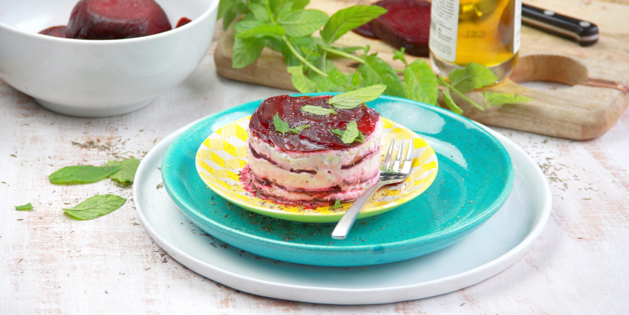 Mille-feuilles de betterave et fromage frais au noix