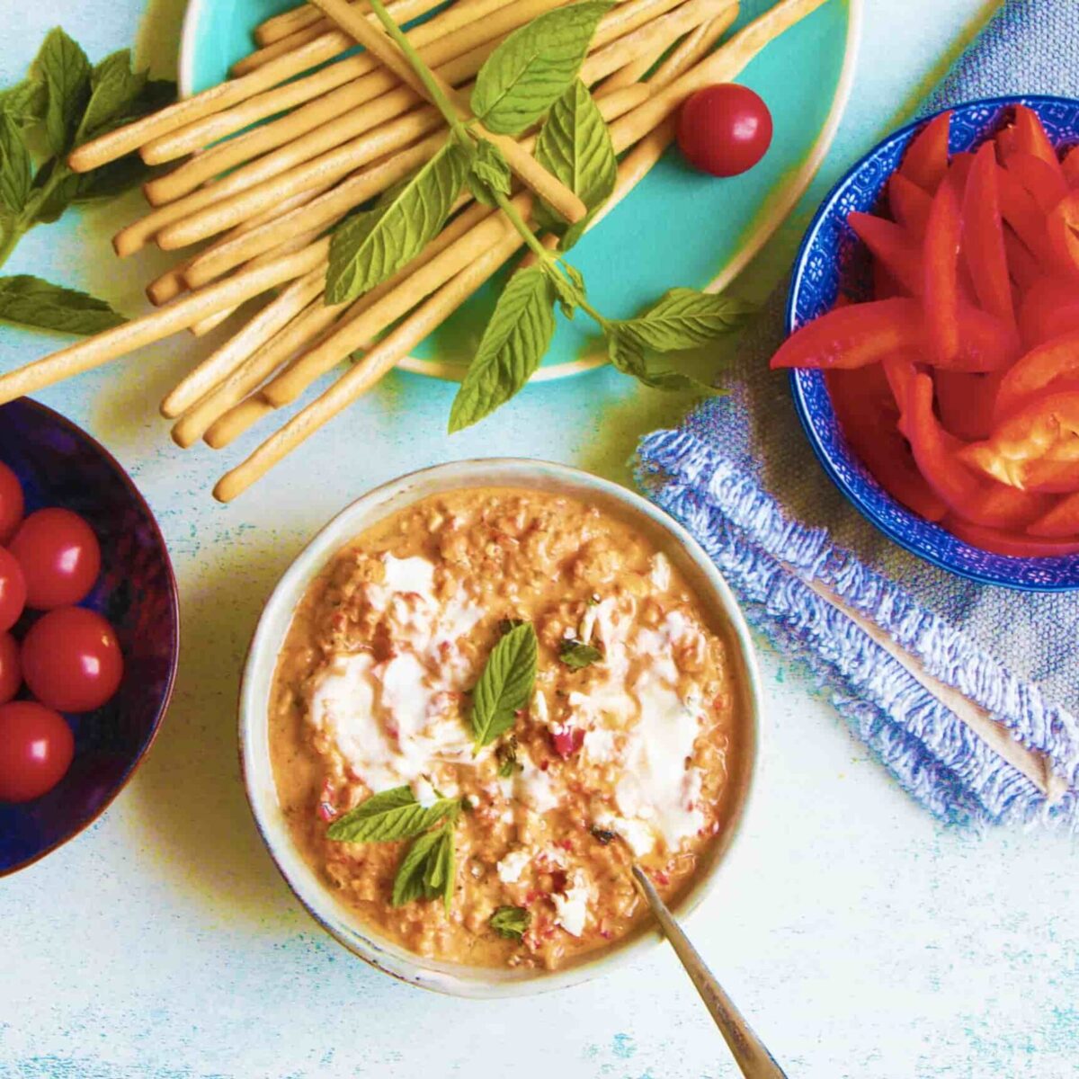 - Enfin, je dresse le pesto dans un joli bol de service et je l’accompagne de bâtonnets de carottes et de pain grillé pour un apéritif délicieux.