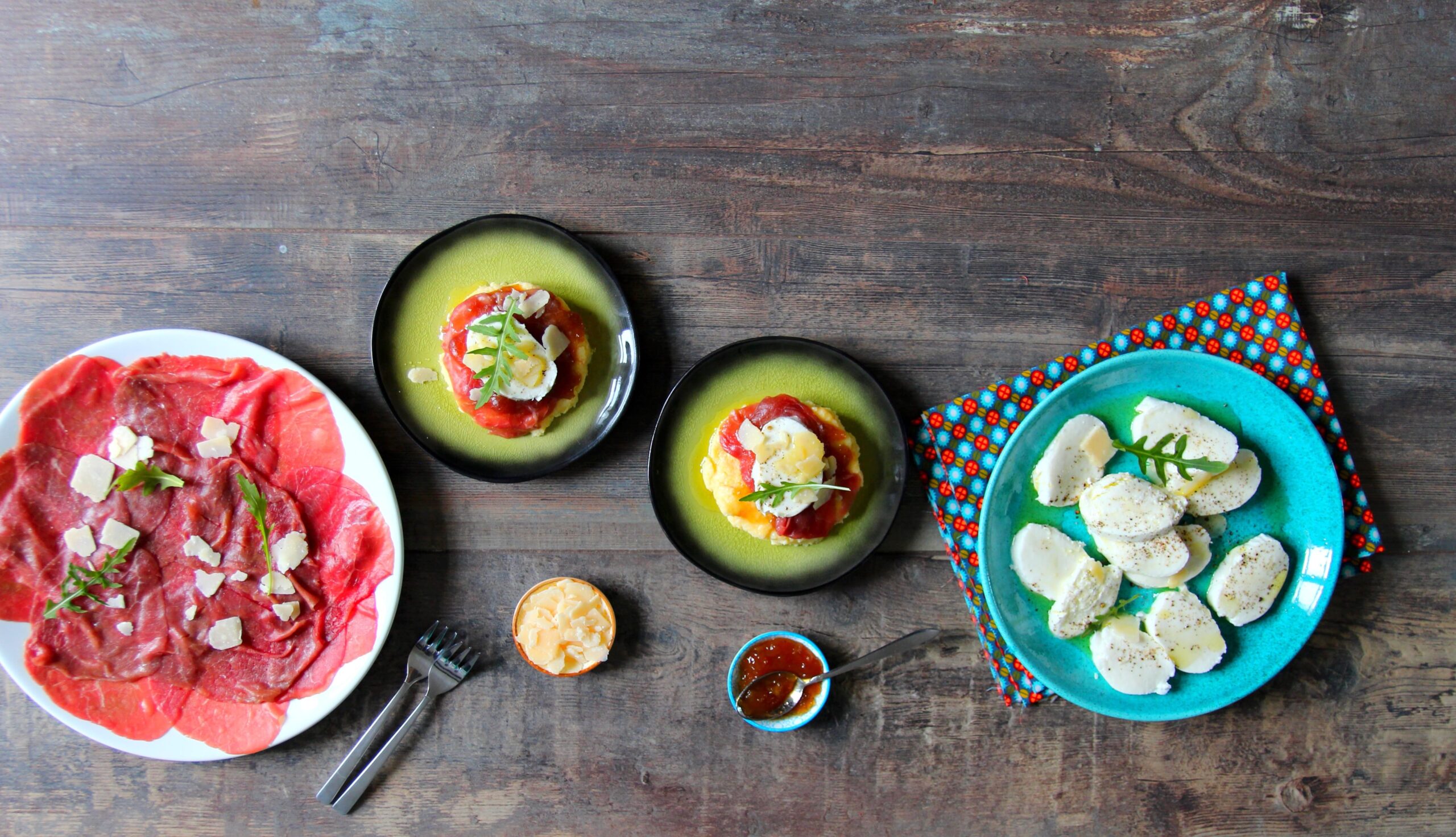 - Je coupe à l’emporte-pièce un cercle de polenta et dispose dessus les oignons confits et le carpaccio de bœuf.