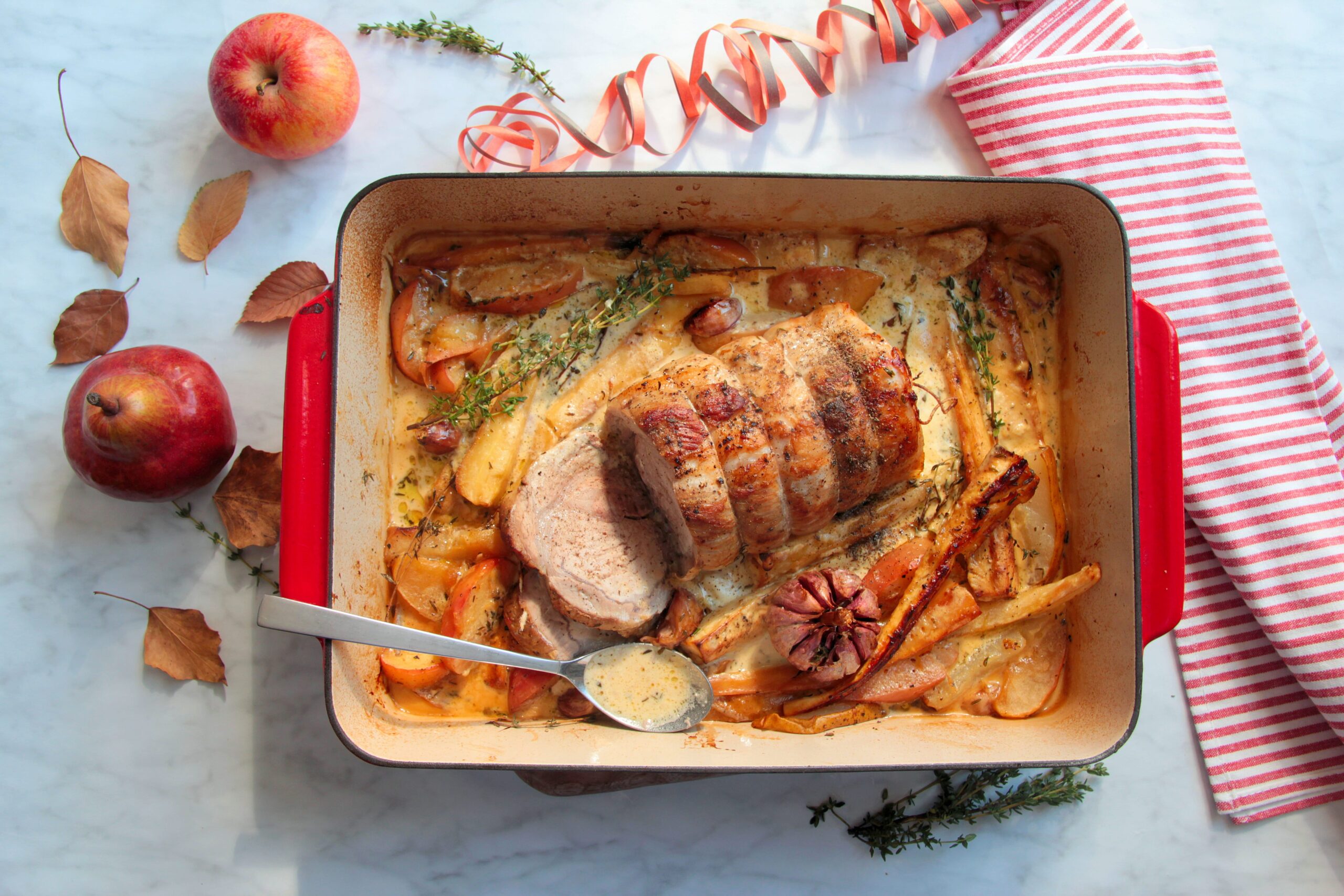 Rôti de porc aux panais et sauce crémeuse au thym et origan