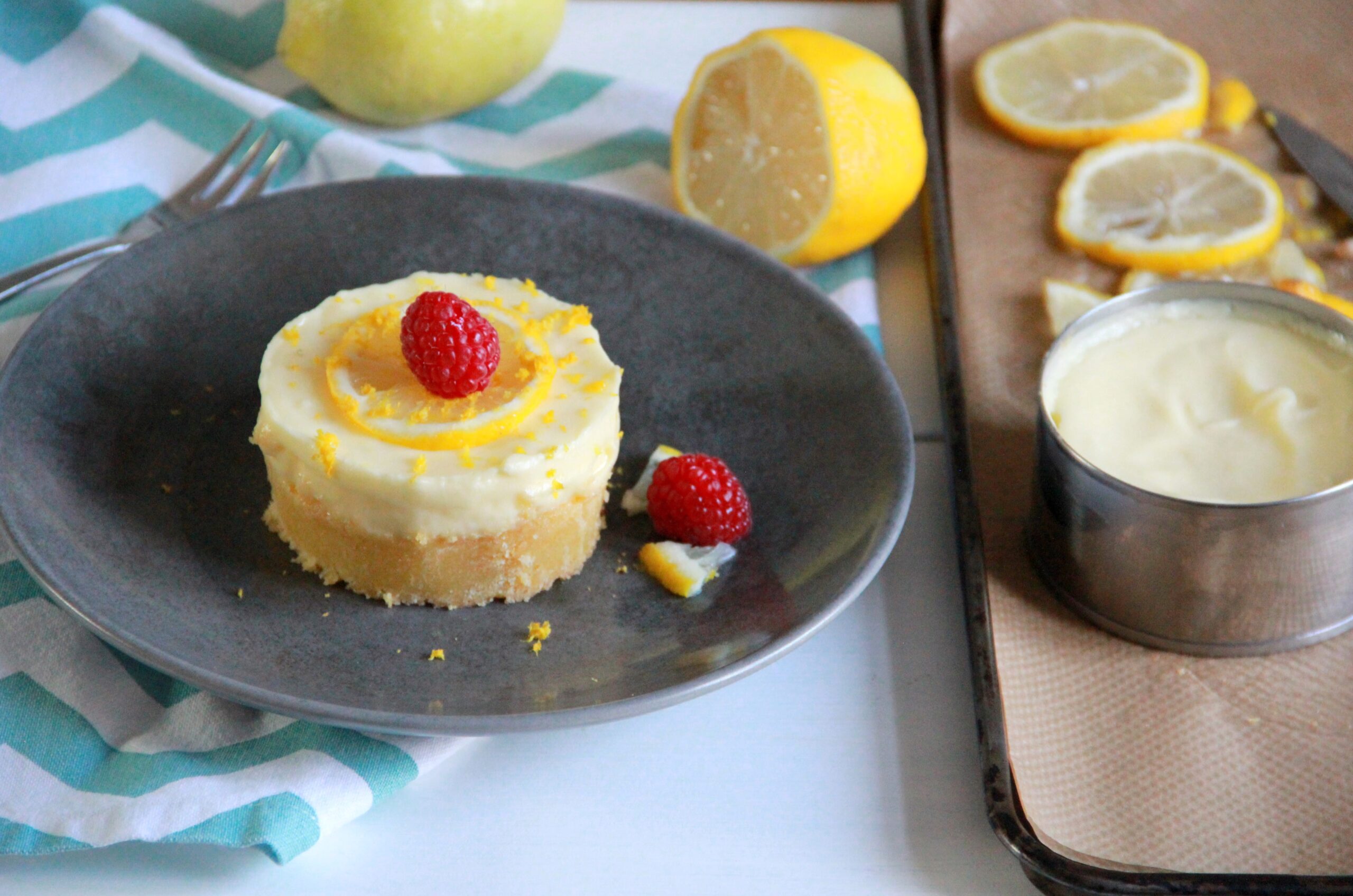 - Pour finir, je répartis la crème au citron, puis la chantilly sur les sablés dans les cercles. Je réserve le tout pendant 2 heures au réfrigérateur. Enfin, je démoule et je sers avec une rondelle de citron ou des framboises.