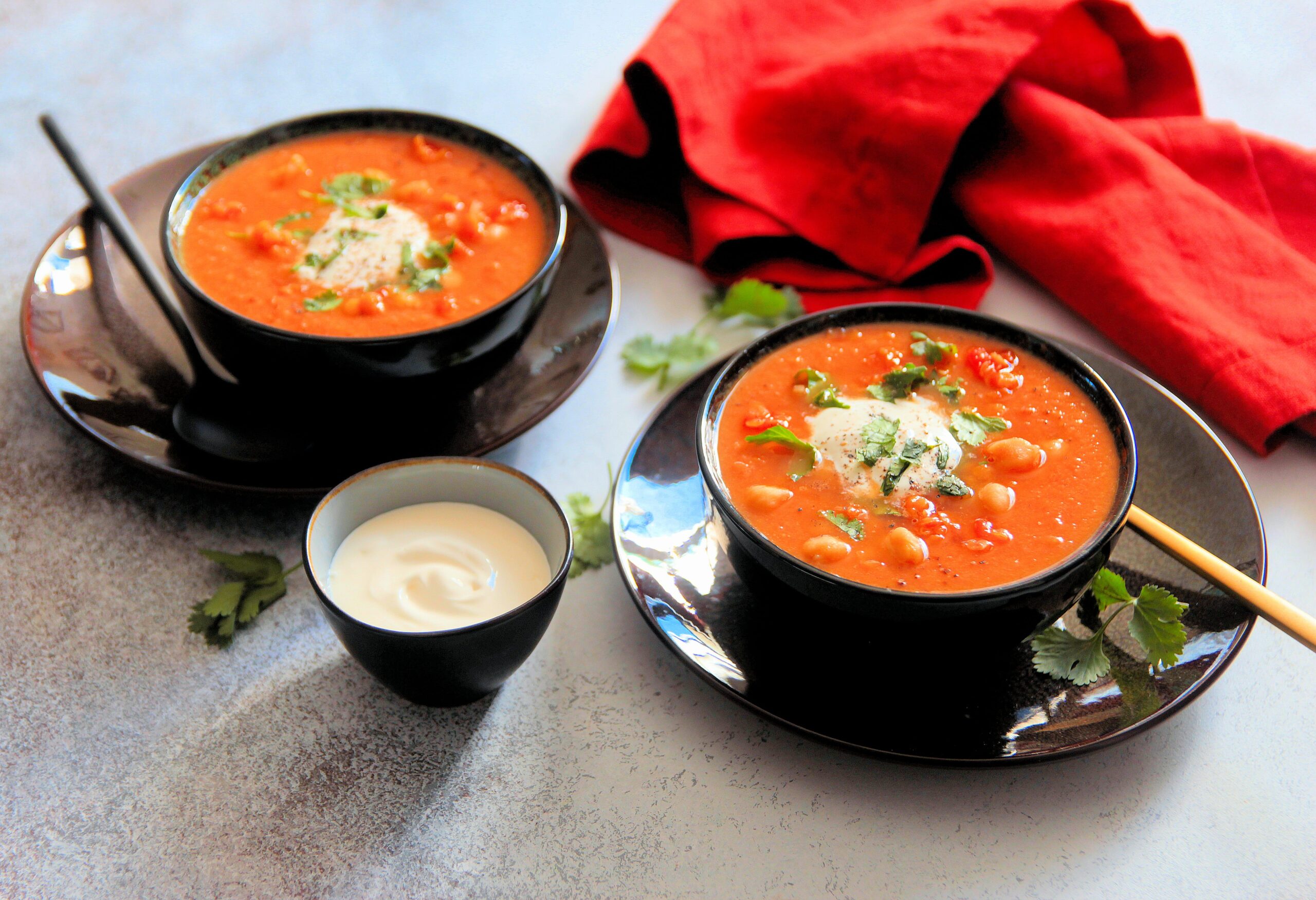 - Enfin, je répartis la soupe dans des bols ou des assiettes creuses. Je dépose une belle cuillère à soupe de crème sur le dessus de chaque portion, puis je parsème de coriandre ciselée pour ajouter une touche de fraîcheur et de couleur.