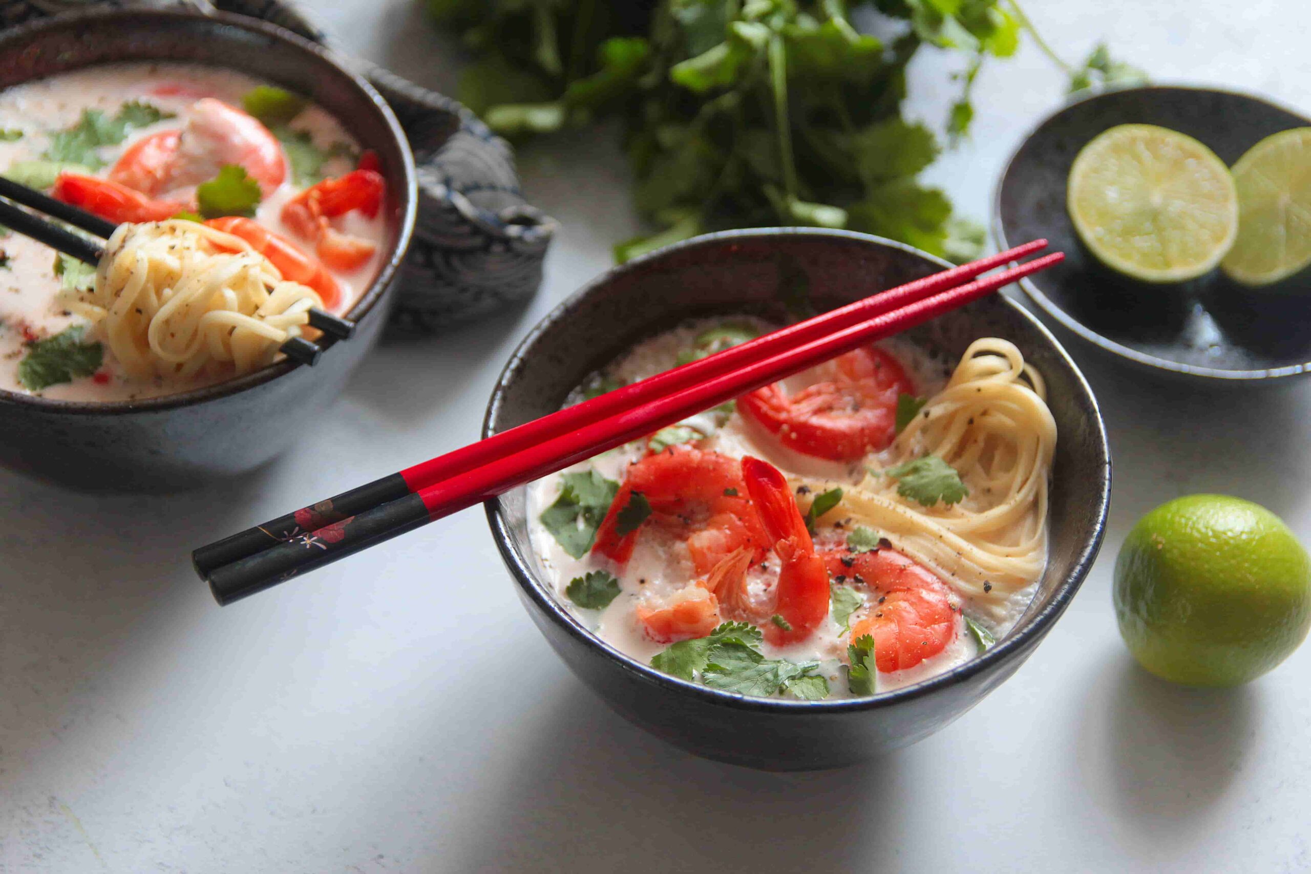 Soupe Thaï aux nouilles et crevettes