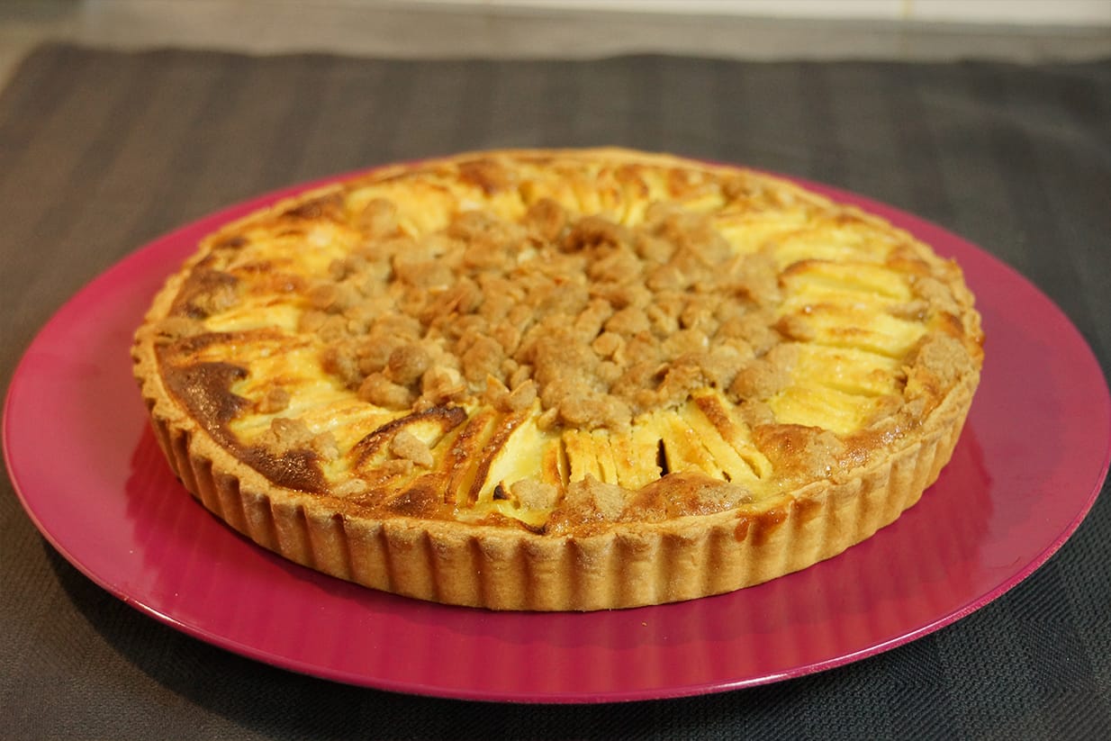 Tarte aux pommes fondantes à la crème d’amande et crumble pain d’épices
