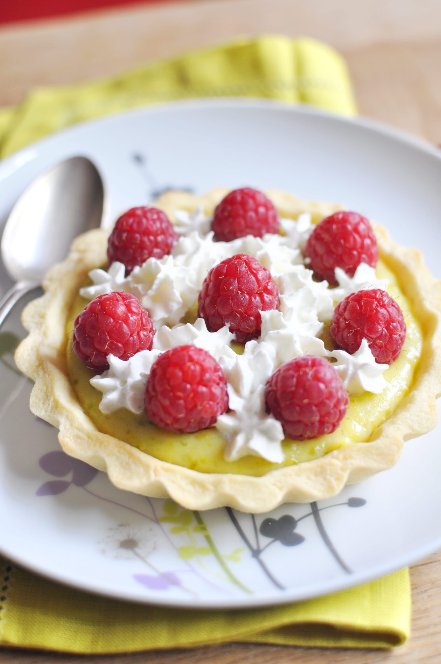 - Lorsque les tartelettes sont froides, je les remplis de crème à la pistache et répartis les framboises dessus.