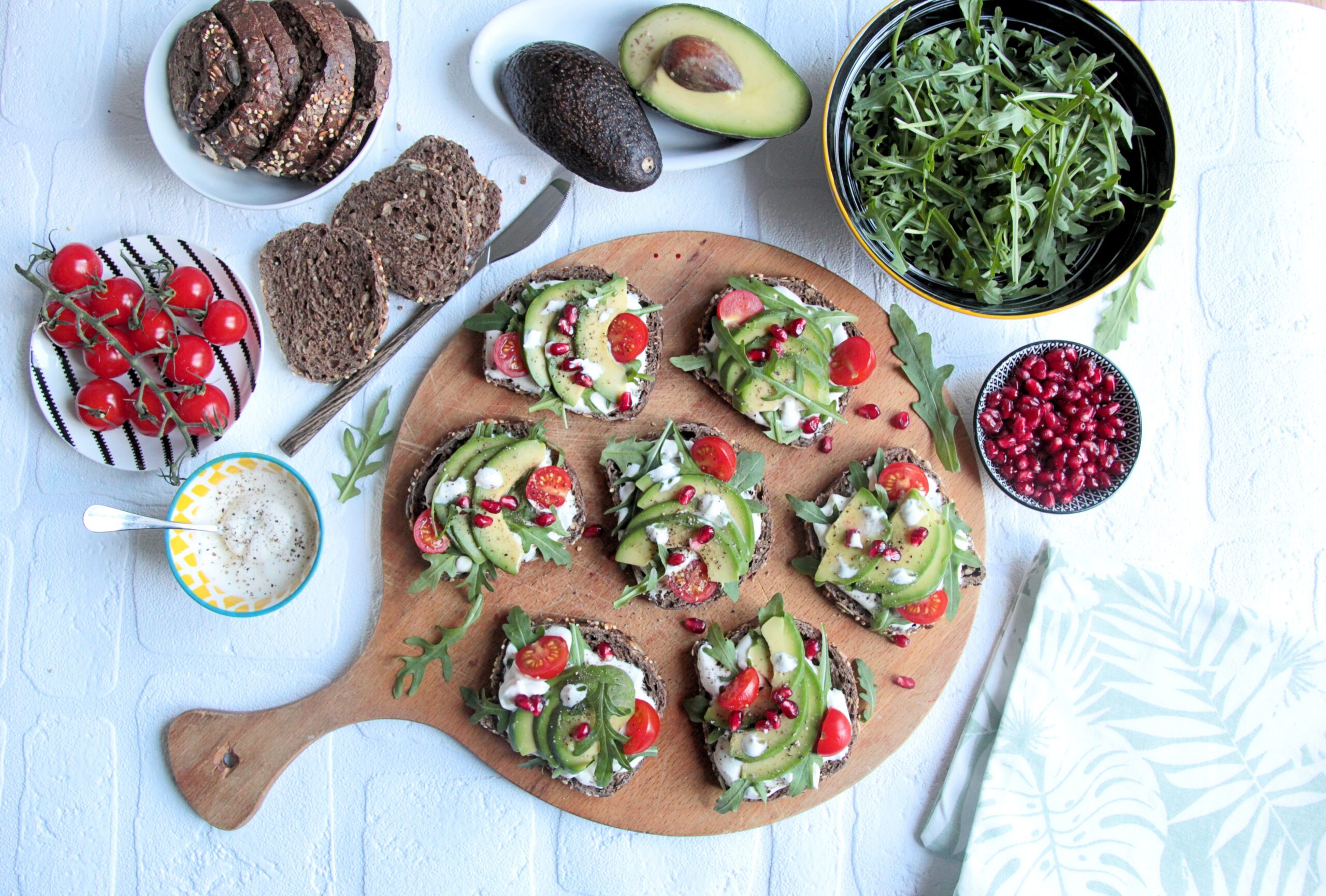- J’ajoute quelques tranches d’avocats, quelques graines de grenade et une tomate cerise coupée en deux. Je poivre.